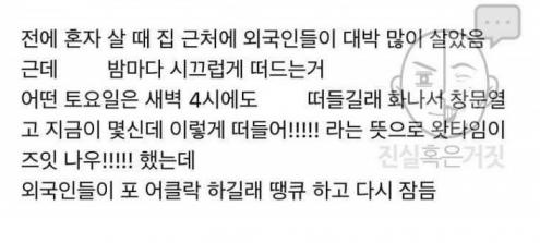 새벽 4시에 떠드는 외국인들한테 화냄